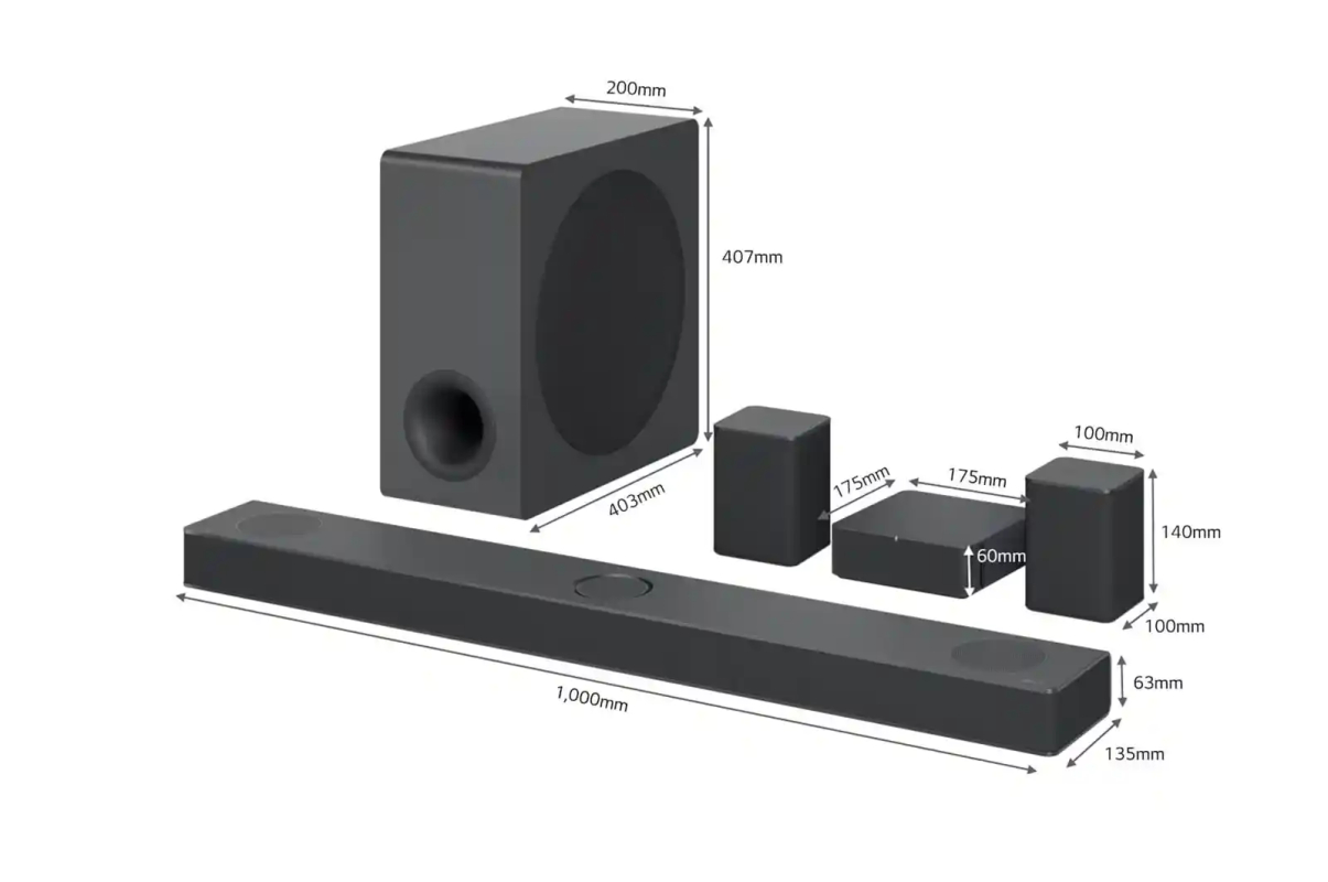 - Enceinte centrale à projection verticale, Caisson de basses sans fil, Enceintes arrière