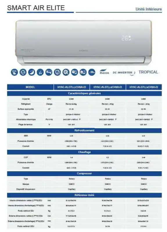 Climatiseur HyundaI Smart Air Elite 12000BTU/+
