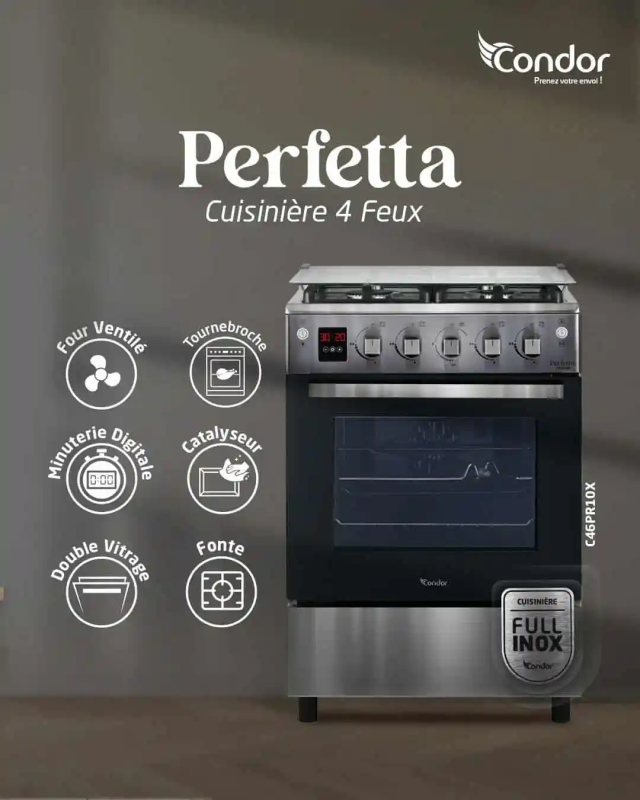 Cuisinière Condor Perfetta 4 Feux Full Ventilee Inox Nouveau