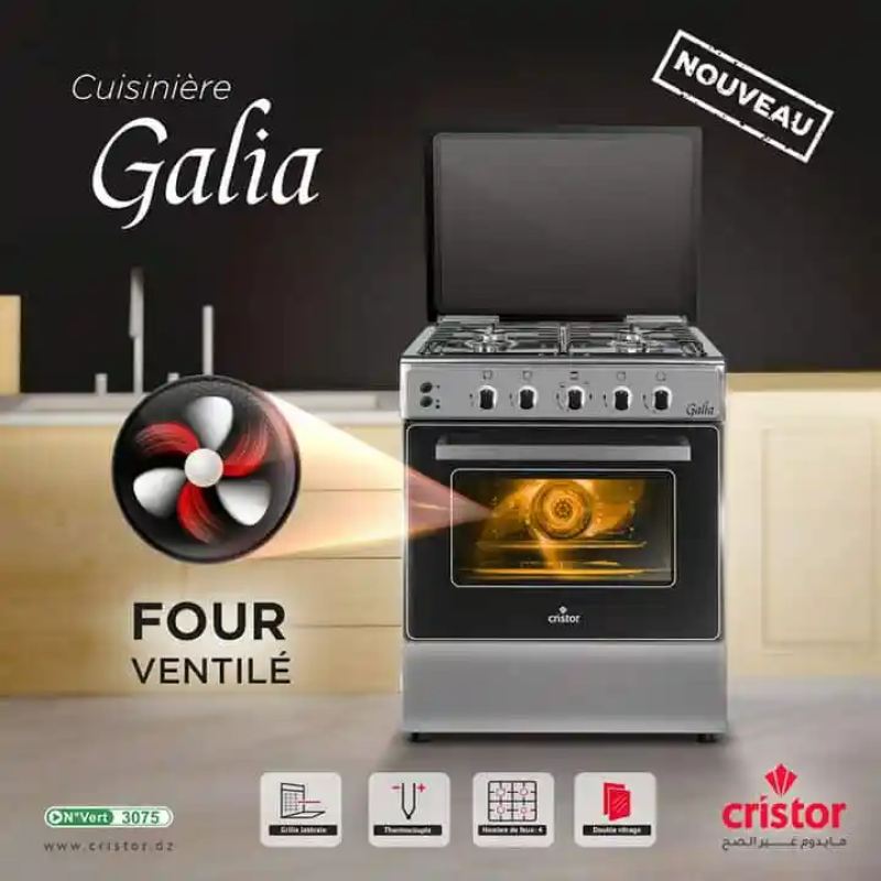 Cuisiniere GALIA 4 Four ventilée Gris Inox137000 DA