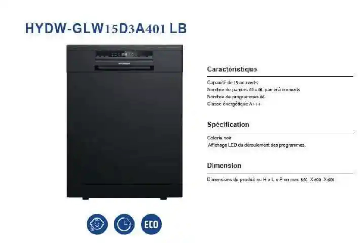 Lave Vaisselle HYUNDAI Noir Nouveau