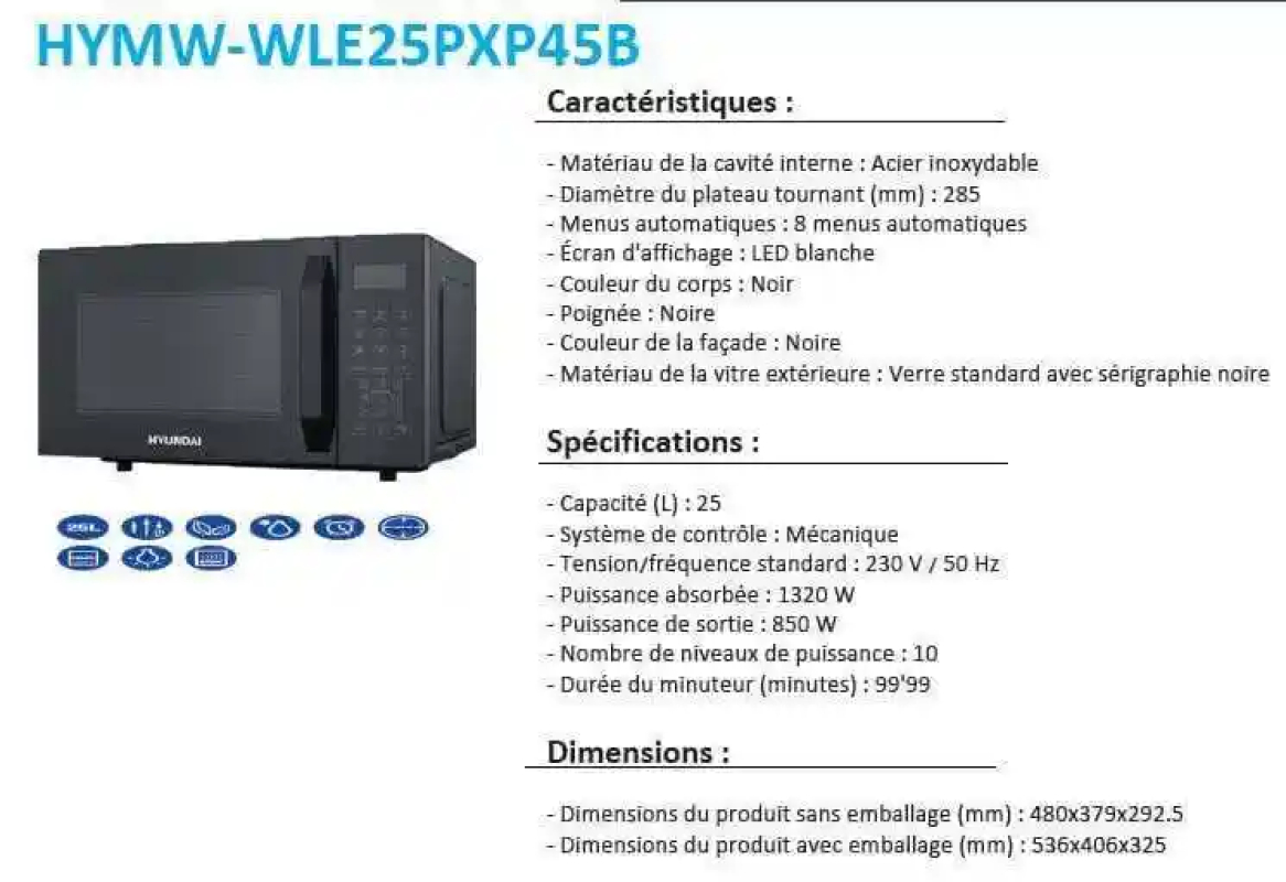 MicroOndes HYUNDAI Multifonctionelle 850W127800 DA