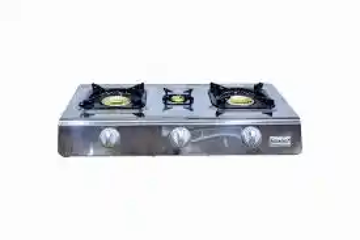 - Réchaud à gaz 3 feux en acier inoxydable.